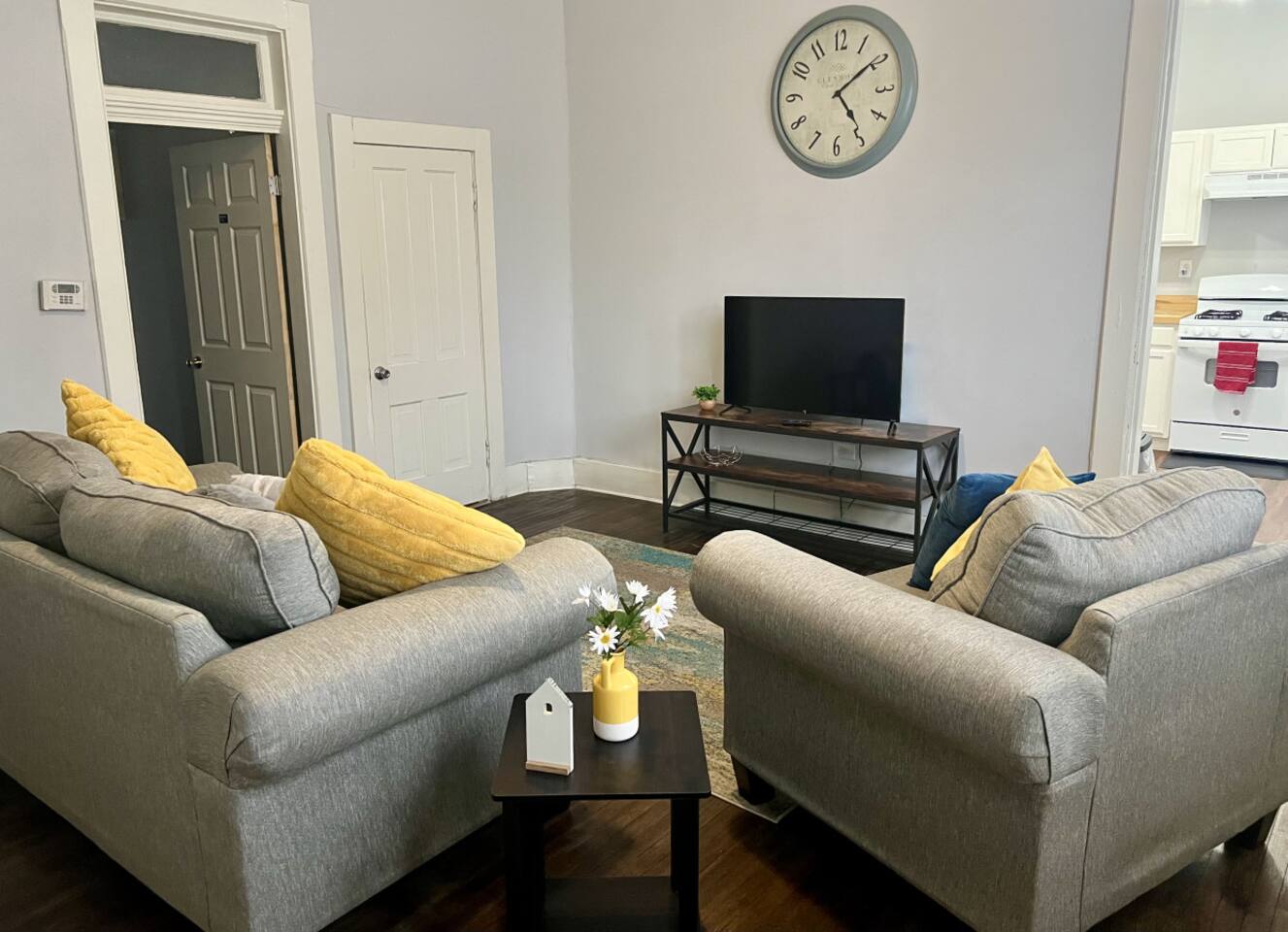 Other Details to Note: → This is a duplex-style home with two separate living spaces connected under one roof — perfect for large groups who want to stay together but still enjoy a little extra privacy. → The upstairs queen bedroom has the only bathroom on the second floor. → Free street parking is available directly in front of the home, but spots are first come, first served. There is also a parking pad available behind the home. → Both kitchens are fully stocked for cooking, but there is no dishwasher on either side. → Each living room has a Smart Roku TV — you'll need your own streaming logins to access apps like Netflix, Hulu, etc. → There is no central dining space for 12 people to sit together at one table, but there are two separate dining areas between the two units. → Laundry facilities are not available on-site, but there are local laundromats within a short drive. → This home is located in an urban neighborhood — Fountain Square is lively, walkable, and growing, but like any city setting, guests should be mindful of surroundings. → A signed rental agreement is required before your stay is confirmed. → This is a non-smoking, pet-free property. If you have any questions about the layout, location, or amenities before booking — feel free to reach out! We’re happy to help make sure this home is the perfect fit for your stay in Indianapolis.