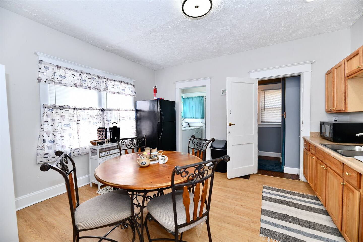 Welcome to your perfect home-away-from-home in Indianapolis! This spacious 4 bedroom, 2 bathroom home is designed for comfort, convenience, and relaxation — just 5 minutes from Downtown Indy and with quick access to major highways. Downstairs features a cozy living room with a Smart TV, perfect for unwinding after a long day. The dining area seats 4, and the fully equipped kitchen includes full-size appliances, a gas stove, microwave, and Keurig coffee maker with coffee, tea, and hot chocolate pods. Upstairs, you'll find all 4 bedrooms: Bedroom 1: Queen bed + Smart TV Bedroom 2: Full bed Bedroom 3: Full bed + Smart TV Bedroom 4: Full bed + Twin bed Bathrooms: Main floor bathroom with standing shower Upstairs bathroom with shower/tub combo Enjoy free high-speed WiFi throughout the home, washer and dryer for your laundry needs, and both private driveway parking plus free street parking. Whether you're here to explore the city, visit family, or need a comfortable place to work and relax — this home has everything you need for a great stay in Indy!