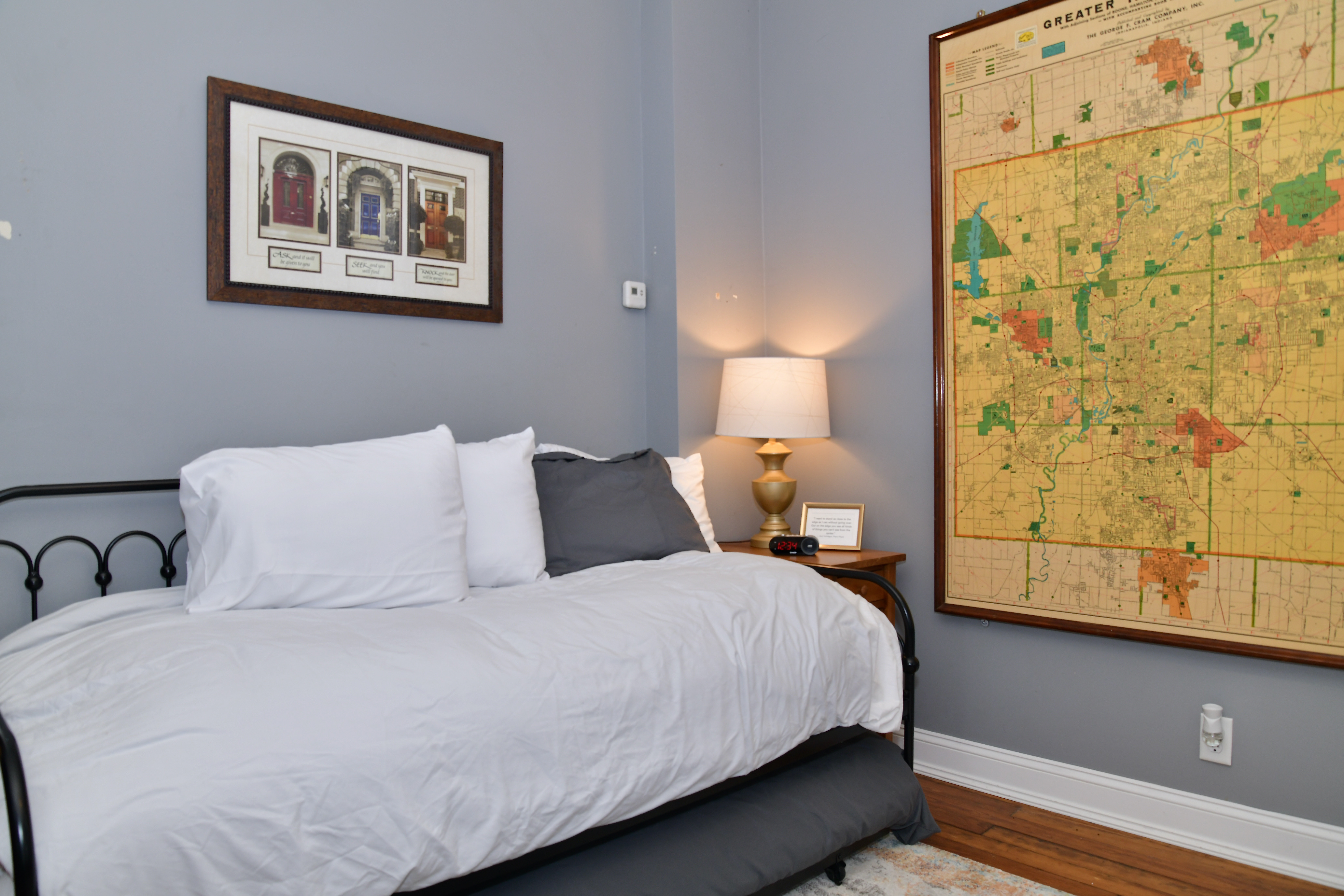 Queen Size bed Twin Trundle beds High speed WiFi 2 Desks for work space Books Smart TVs Air Fryer component on oven Full size refrigerator Located in Historic Fletcher Place district